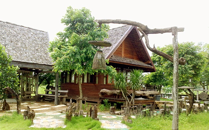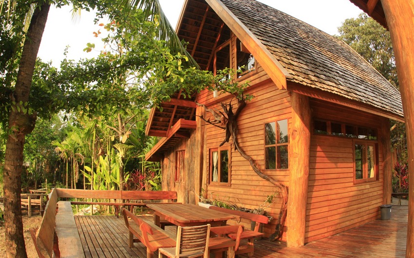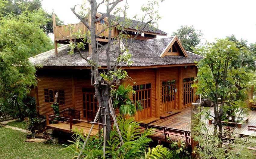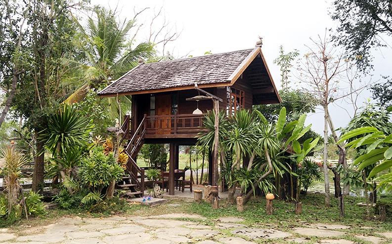 บ้านไม้สัก 2 ชั้น ชั้นล่างมีเตียงคู่ ห้องน้ำหนึ่งห้อง ชั้นสองเสริมที่นอนได้ 2-3 คน รอบบ้านประกอบด้วยสวน และระเบียงไม้กว้าง มีศาลาและโต๊ะรับแขกสำหรับนั่งพักผ่อน หรือรับประทานอาหารเช้า