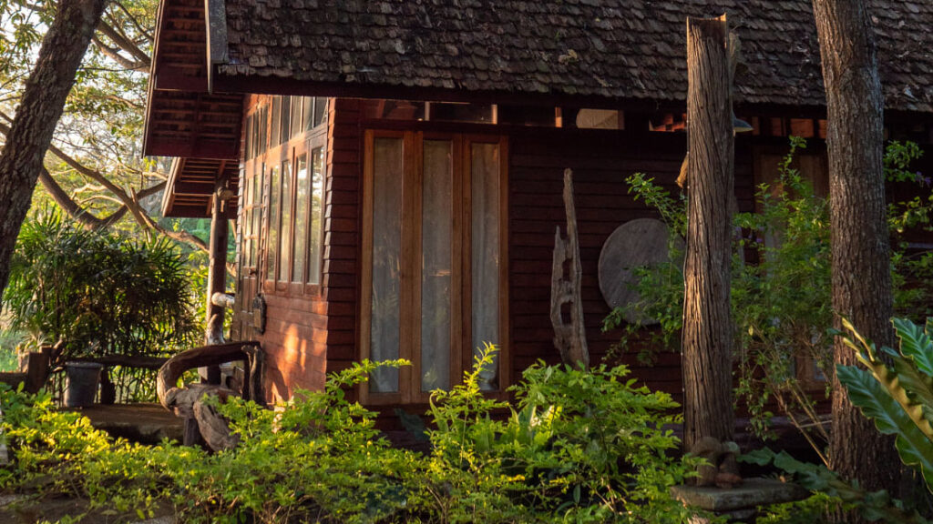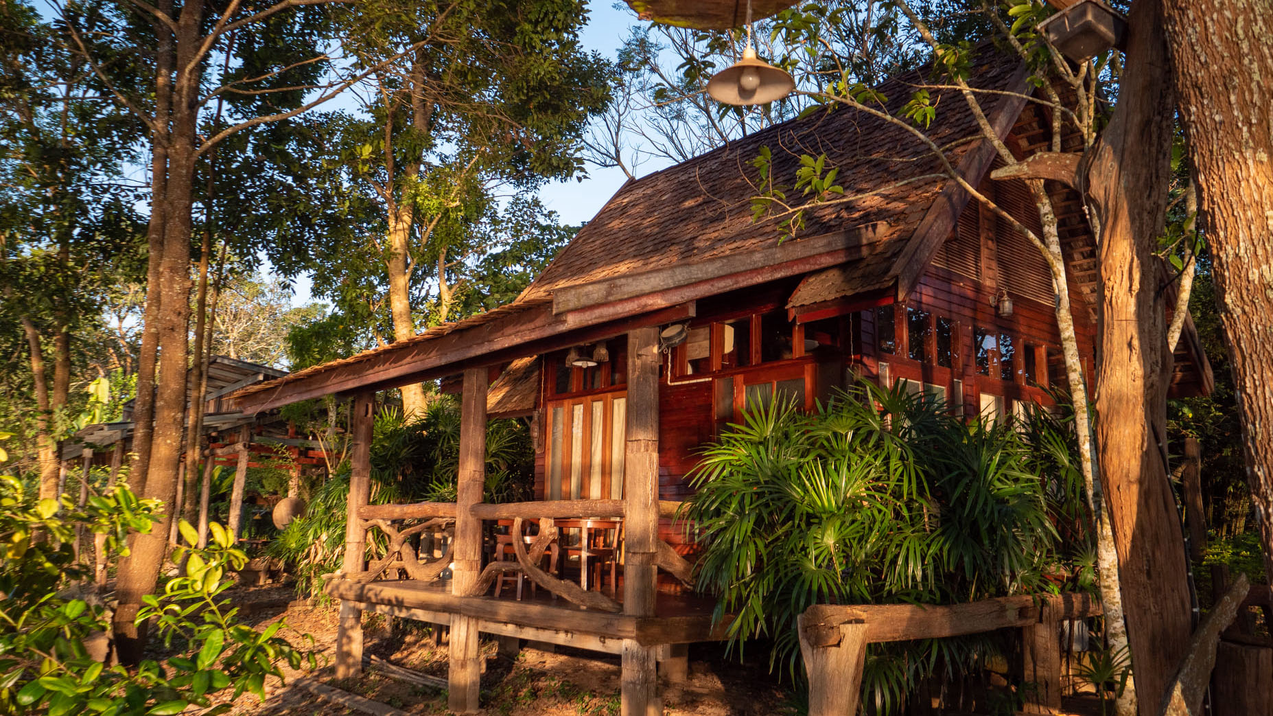 เป็นบ้านไม้ชั้นเดียว 1 ห้องนอน เตียงคู่เสริมได้ 1 ที่นอน มีห้องน้ำในตัว มีระเบียงส่วนตัว ริมน้ำ มีลานระเบียงไม้ ใกล้บ้าน ขนาด 10 x 10 เมตร เหมาะสำหรับการจัดเลี้ยงกลุ่มย่อย หรือกางเต๊นท์